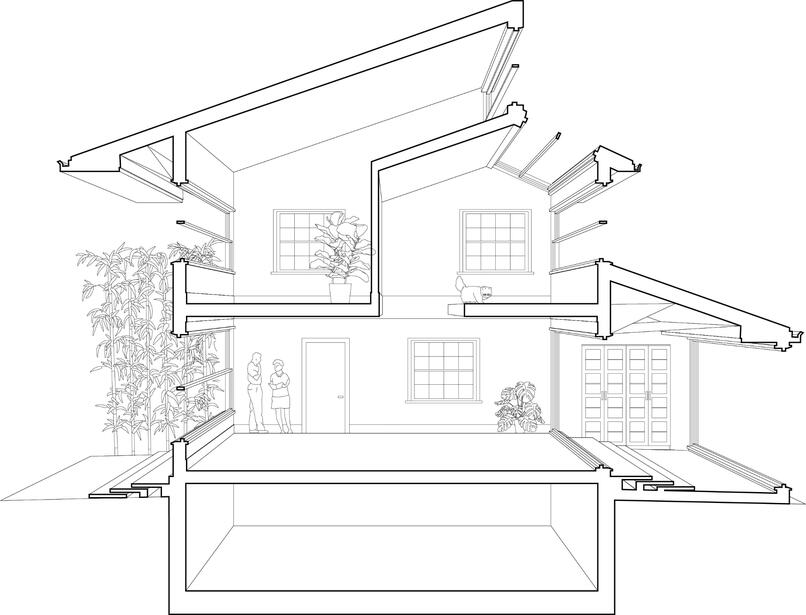 Adapting the average single-family home for future extreme weather conditions using Houston, TX as an environmental context.In landscape heavily affected by climate change, the ways in which we design and develop become more and more crucial. Sustainable design is spearheaded by adaptation of existing structures. Challenged with the common single-family home, I adapted the design with minimal structural changes to react to extreme weather conditions and then to alternative programming using Houston, TX as an environmental context.Diagrams made using Rhino7, Adobe Illustrator, and Adobe Photoshop.