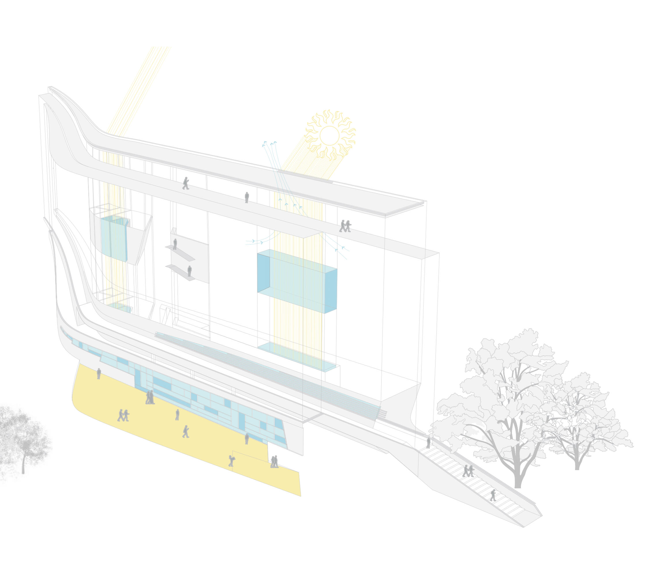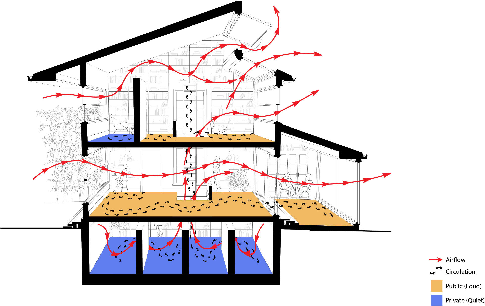 This diagram shows interactions and circulations of public and private space through the stuctural adaptations along with overall airflow.