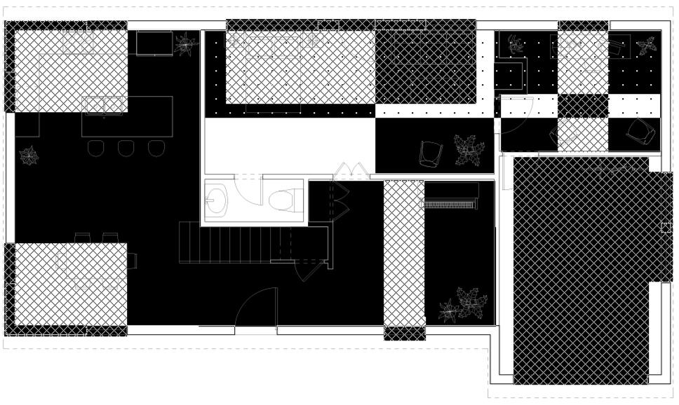 Adapting existing structures is the most sustainable development, thus I have adapted the single family home structure into a retail cafe space. Private single-family homes are notoriously specific in design, but must be reimagined for more public spaces in the future as urban spaces expand into suburbs.