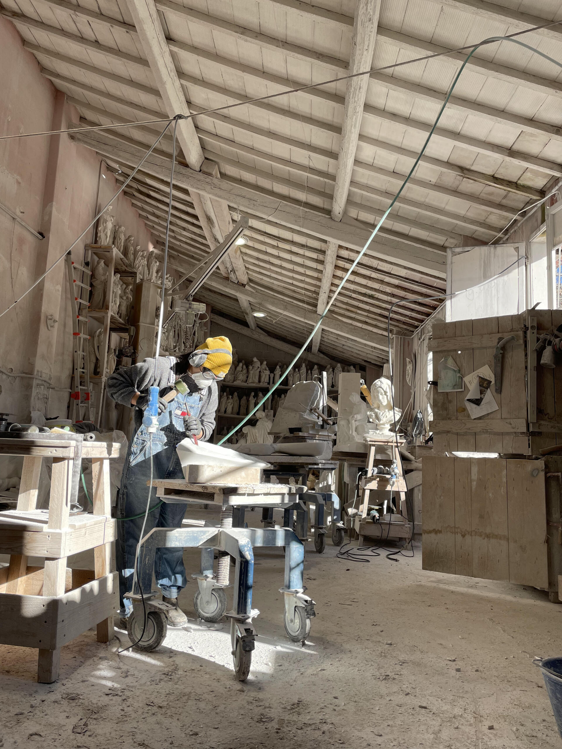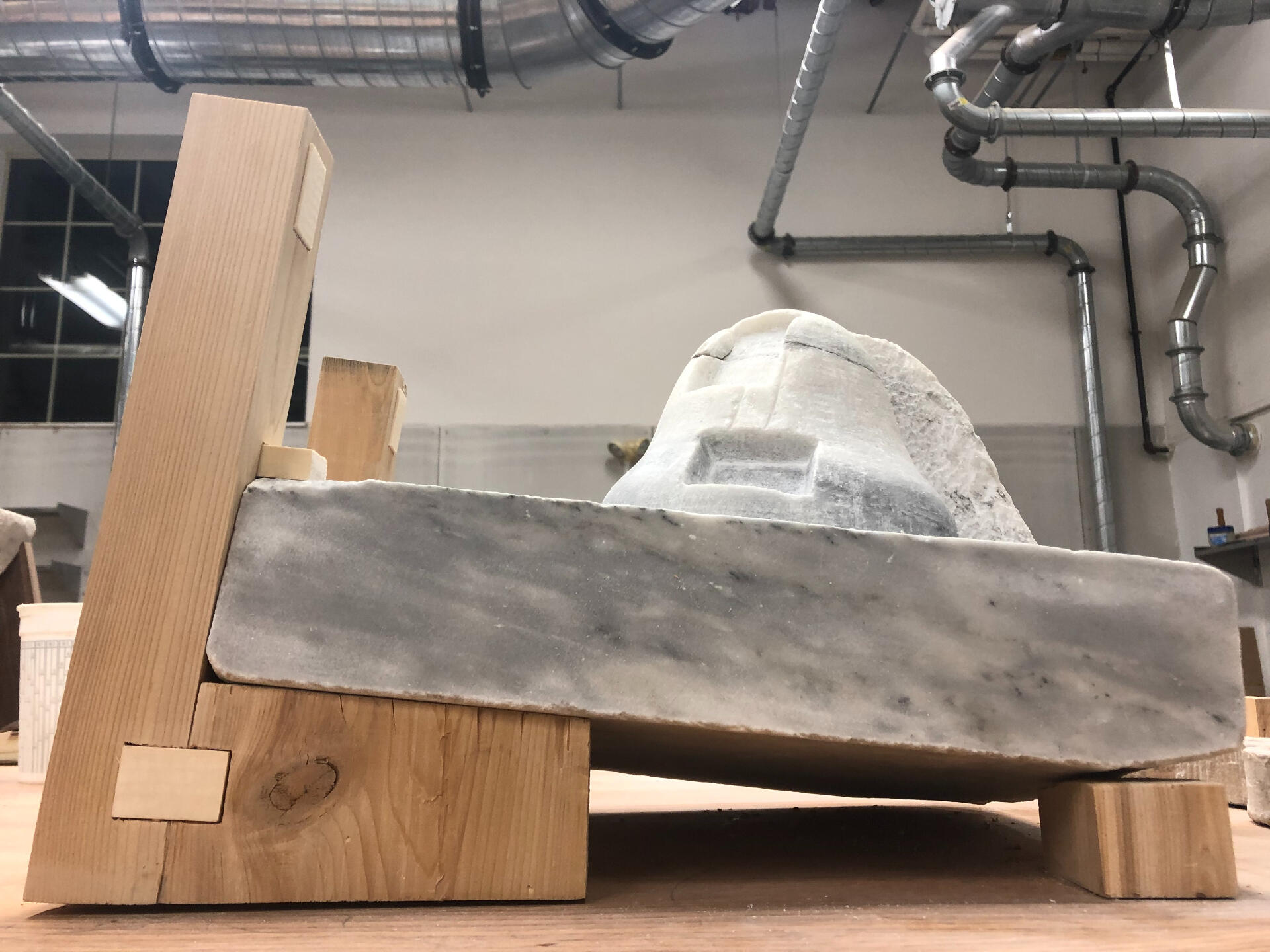 During January 2023, I travelled to Pietrasanta, Italy, and began work on two sculptures, learning under marble-carving master, Christian Lange. I worked every day for 6 hours a day, every week day for 3 weeks, a total of about 90 hours of work experience. I learned to use all kinds of tools and techniques from ancient practices of chisel and hammer to the modern diamond-blade saws and pneumatic chisels. From concept to production, I played with the materiality of marble.