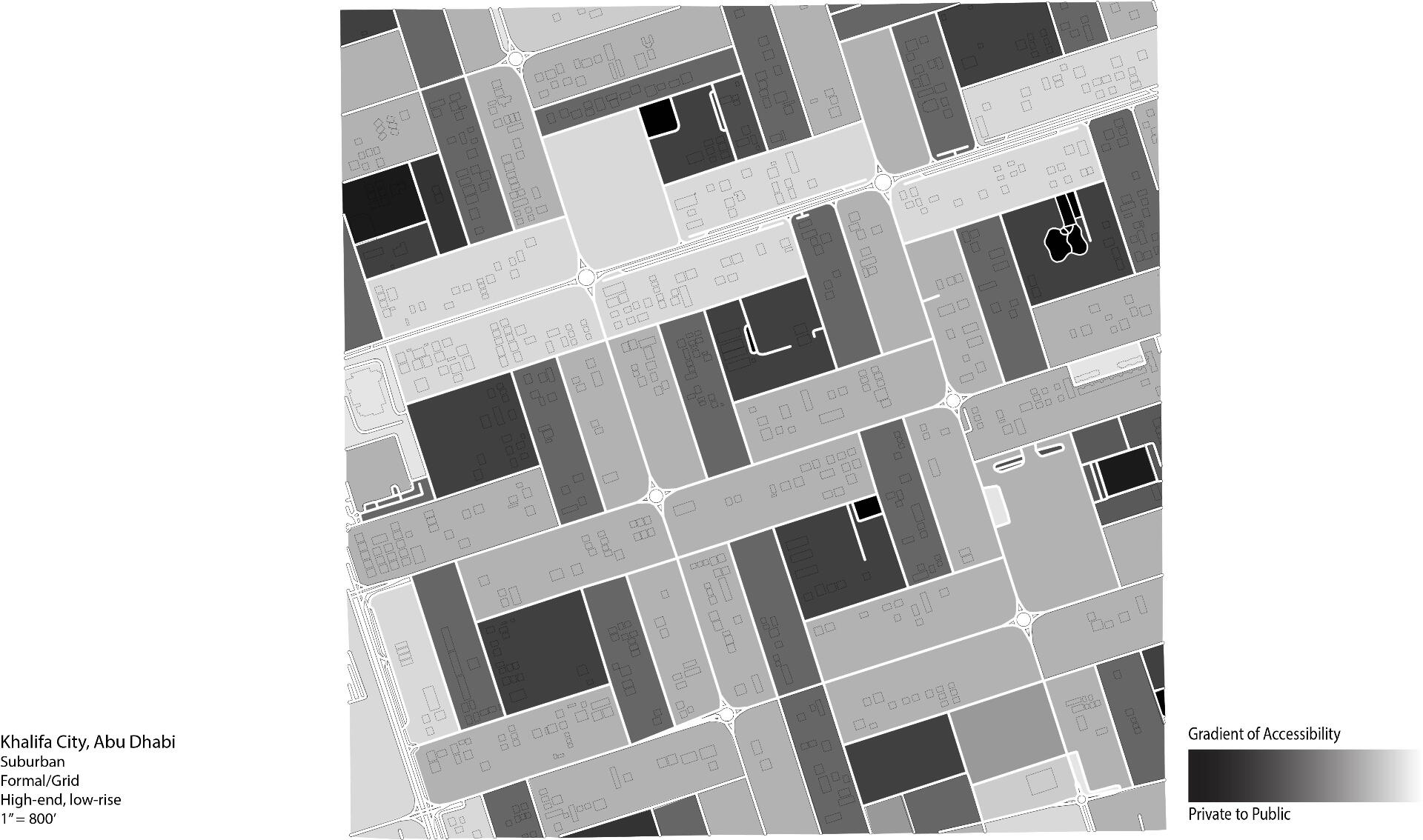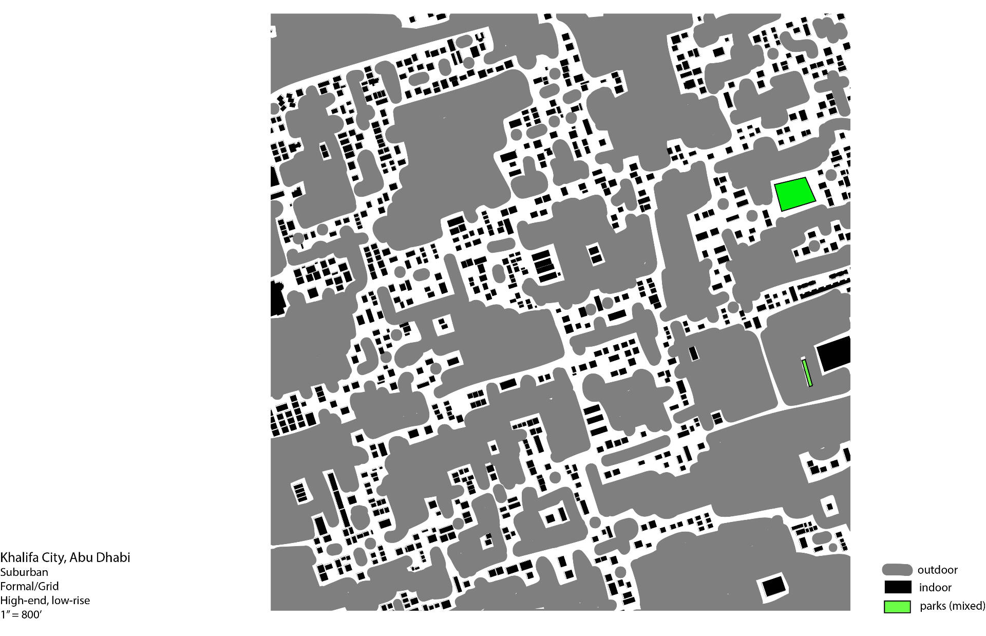 I analyzed a square kilometer of the suburban area of Khalifa City in Abu Dhabi, an area and city that is continuing to grow at a quick pace in recent years. I created three different map illustrations that help visualize publics, development, and traffic.