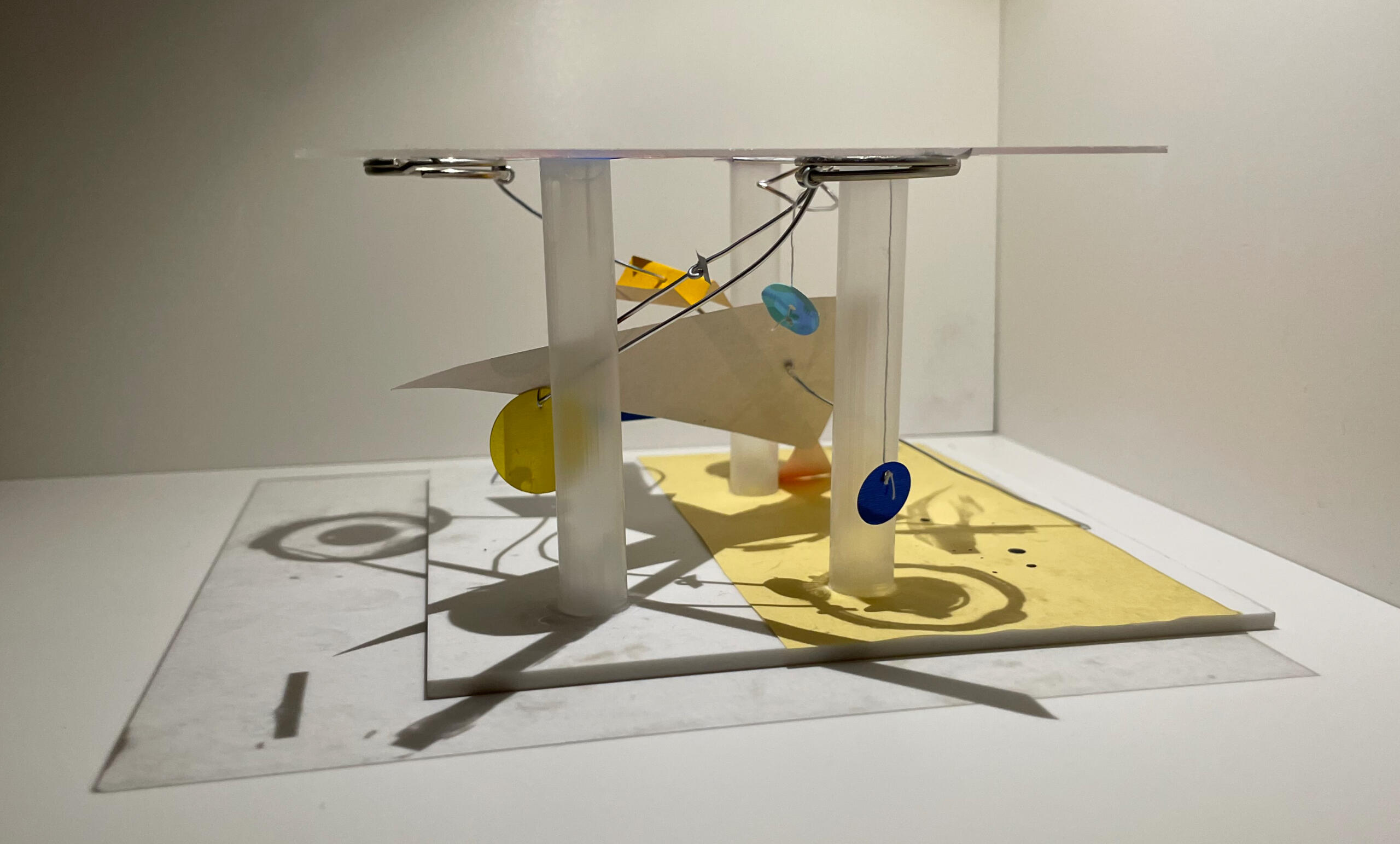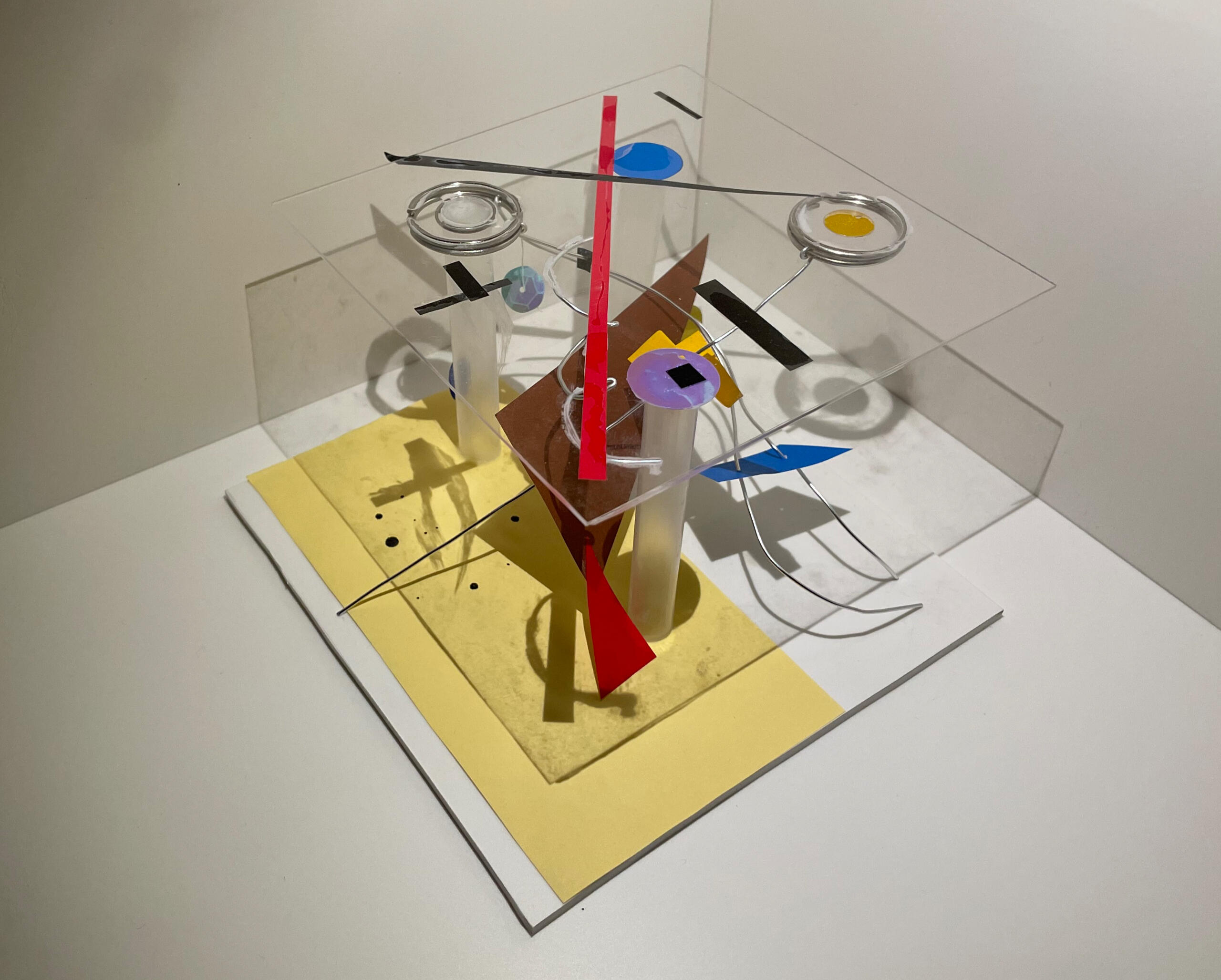 Prompted by an emotional concept, I decided to explore the word “PLAYFUL.” Throughout these long years of pandemic, small sparks of joy have been few and far between, so I was in search of something fun: something fun to imagine, fun to create, and fun to look at. I took inspiration from Kandinsky and Alexander Calder—two artists whom I feel the spark of playfulness from—to create a model that looks just like a Kandinsky painting stretched into three dimensions. This was a joy to create, and I hope it is a joy to see.