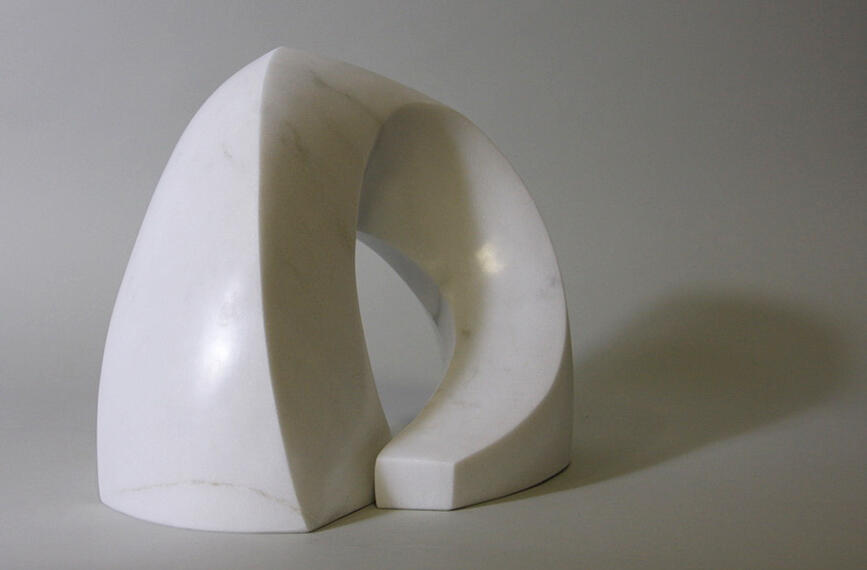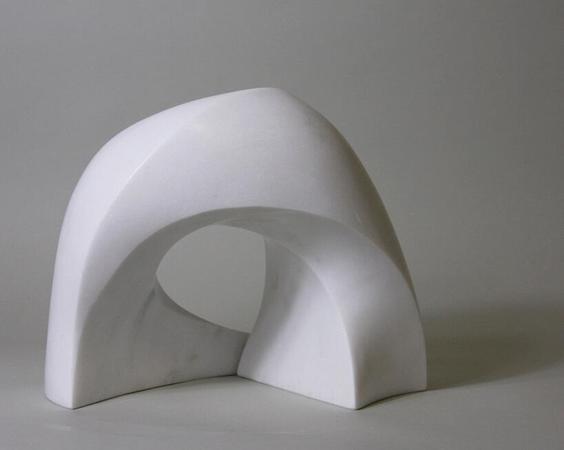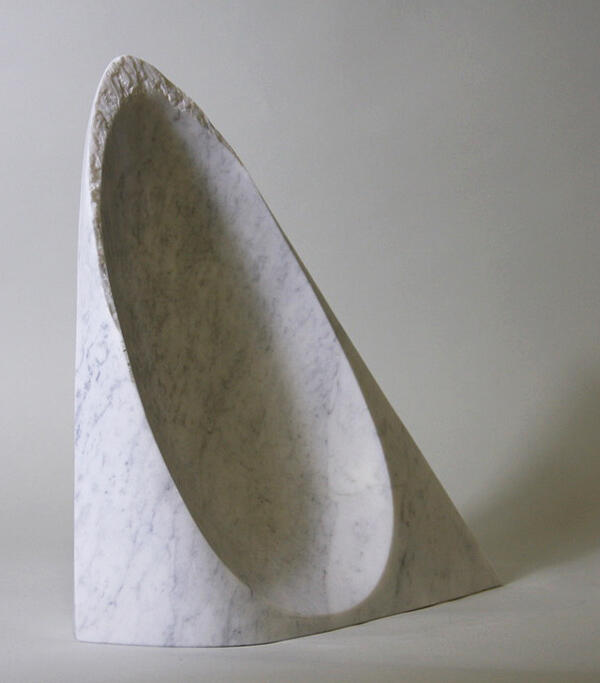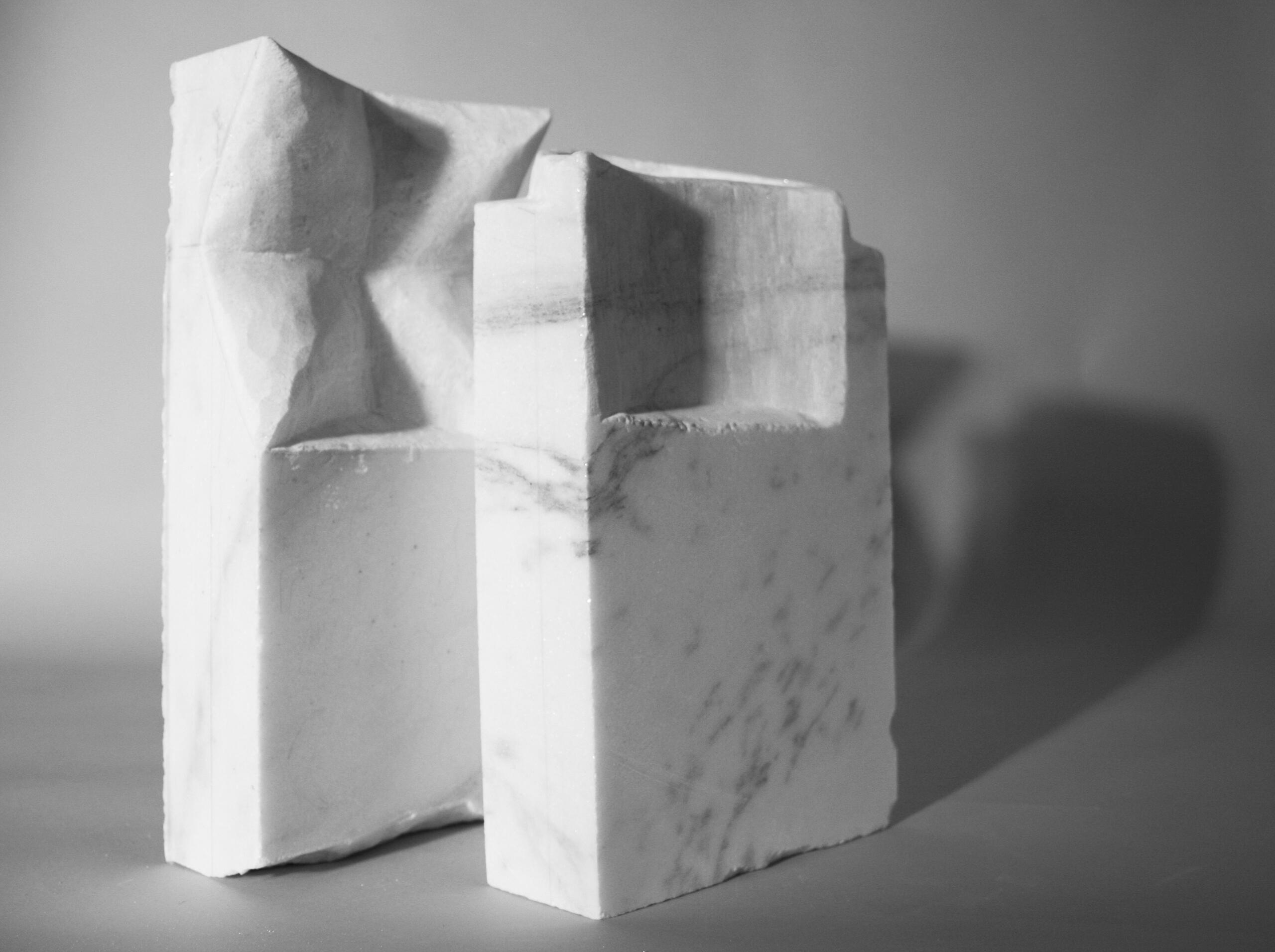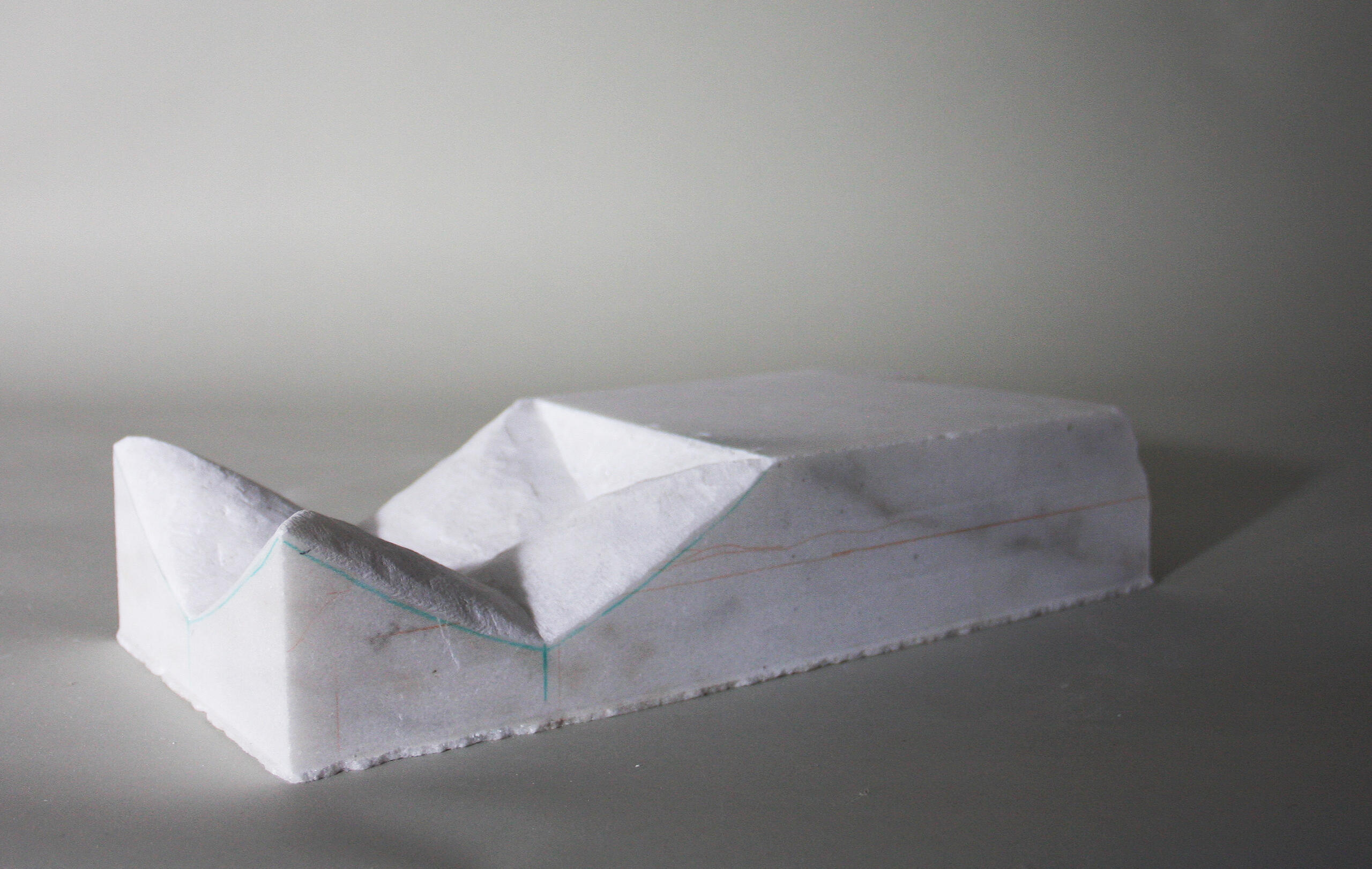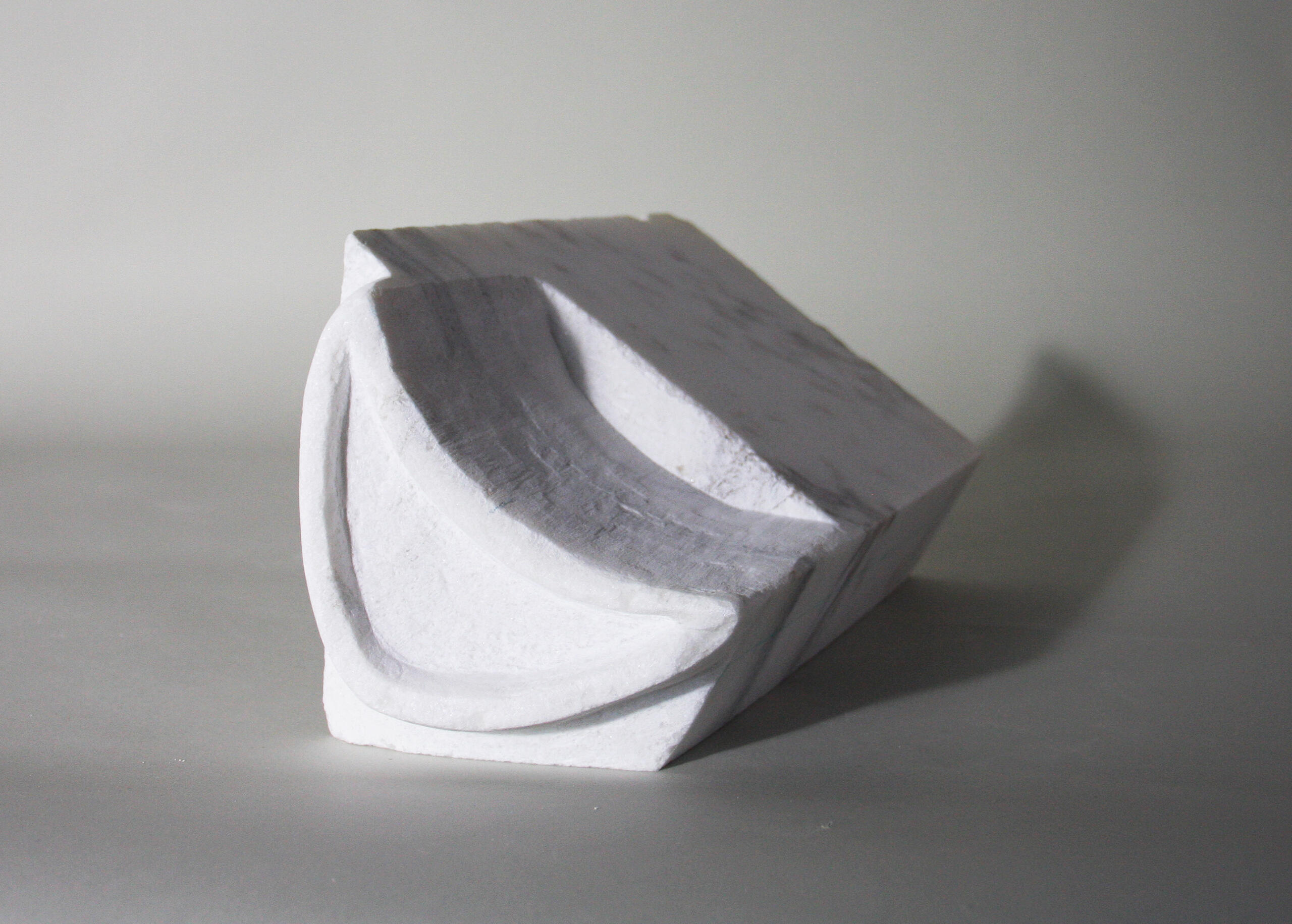 Based on the design of ancient East Asian roof tile pieces. The first a simple translation of the curved tile from clay into marble. The second a looser interpretation of the curves in a corner tile piece. Bringing together Eastern design with Western material and practice. The curves speak as a landscape.